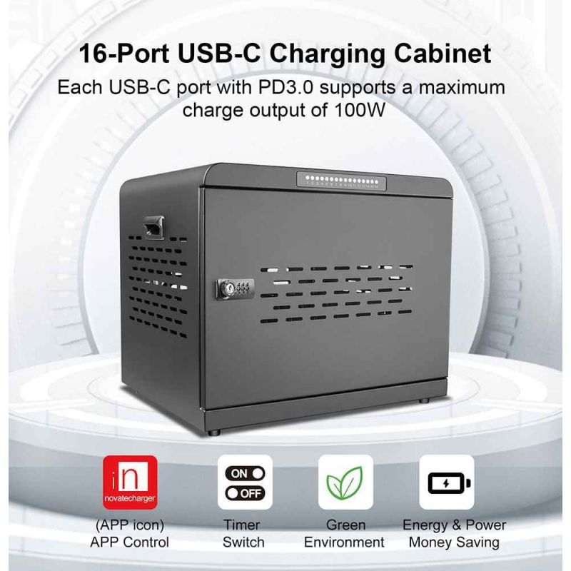 1000W 16-Port USB-C Charging Cabinet