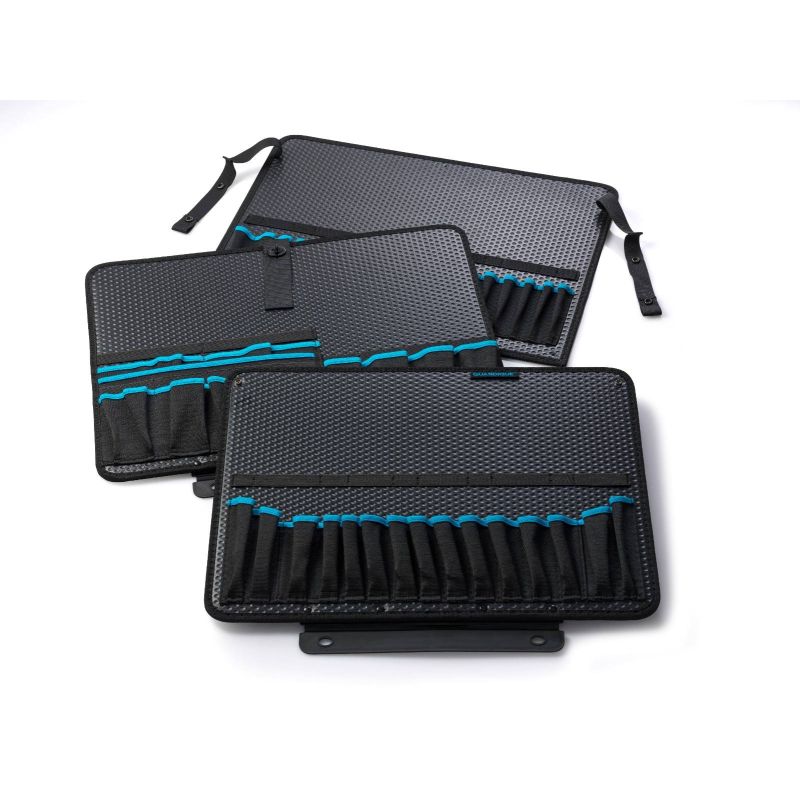 - Geoptimaliseerde Gereedschapsslots: Meerdere vakken en lussen in verschillende maten houden je gereedschap georganiseerd en op zijn plaats, met felblauwe accenten voor snelle zichtbaarheid.